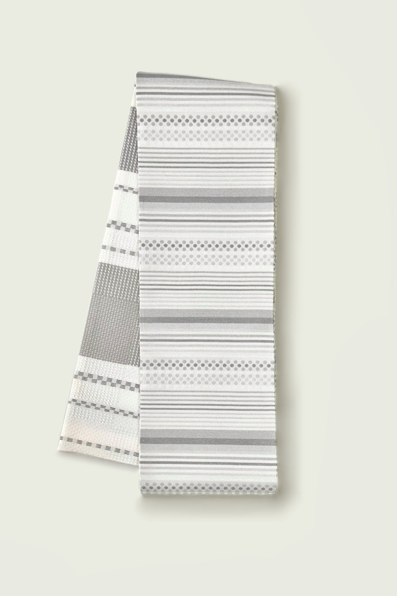 半巾帯 ドットボーダー白グレー