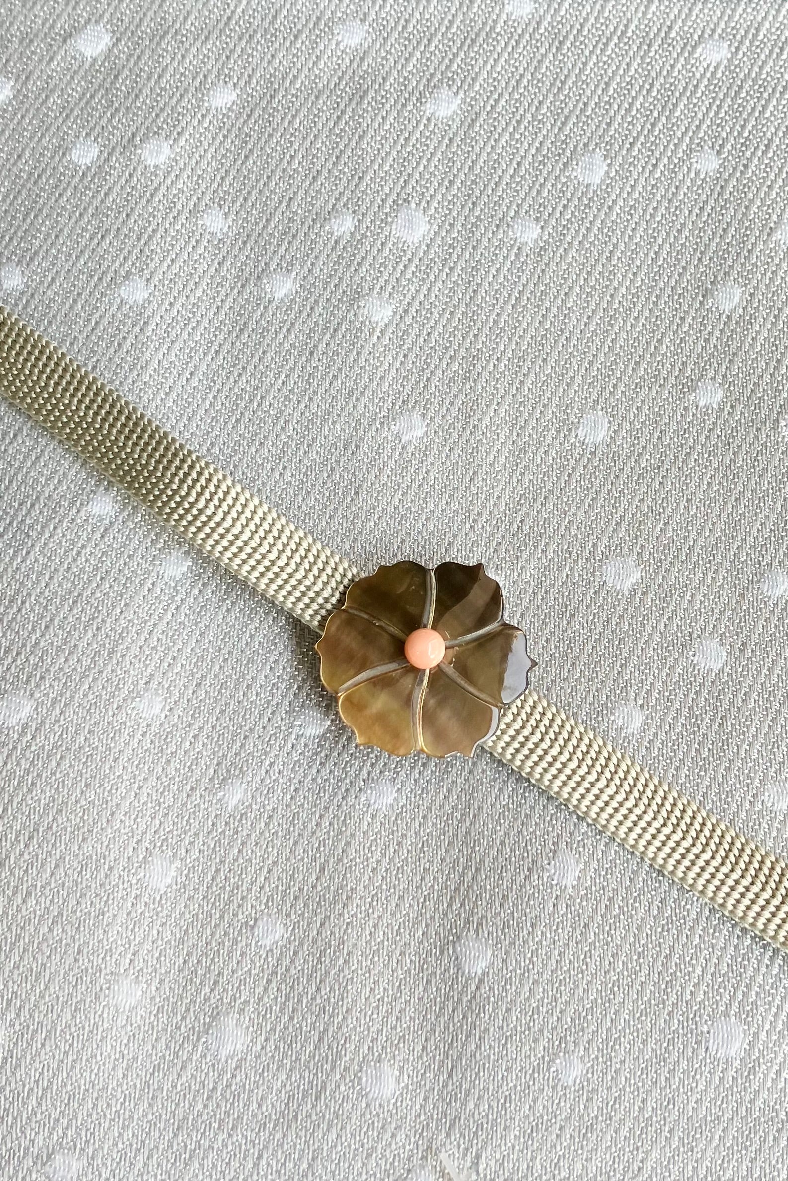 螺鈿帯留 白 花柄