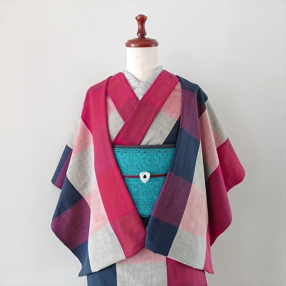 伊勢木綿 斜め縞/オレンジ×ブルー